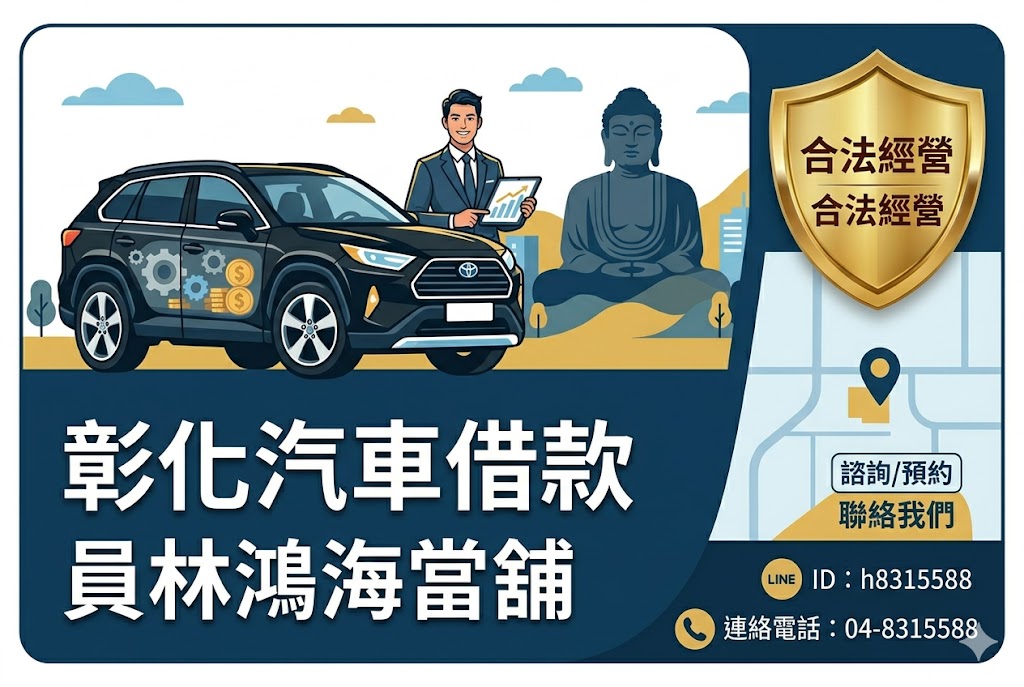 彰化當鋪最高借款額度視質借動產(抵押品)價值決定,已在銀行有貸款之動產車輛亦可辦理免抵押、免保人、免留車借款。